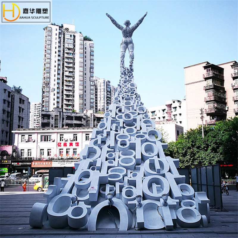 Kerajinan patung lanskap depan baja tahan karat, dekorasi logam kampus sketsa kreatif pintu masuk