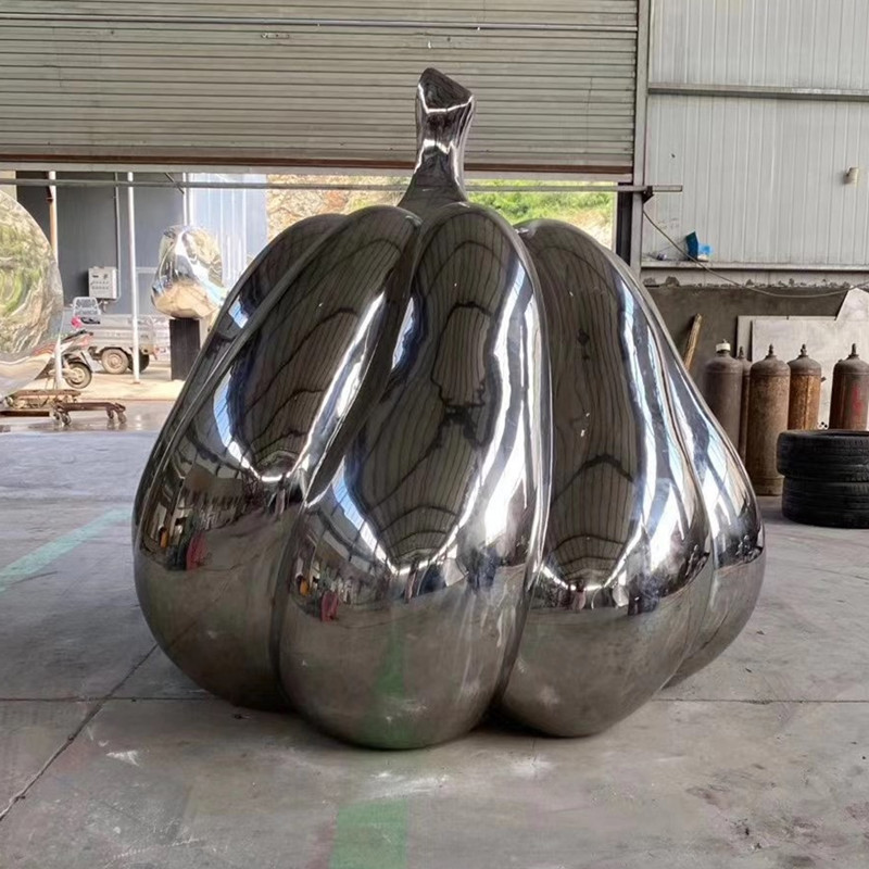Cermin simulasi patung labu baja tahan karat, ornamen logam penghijauan taman lanskap