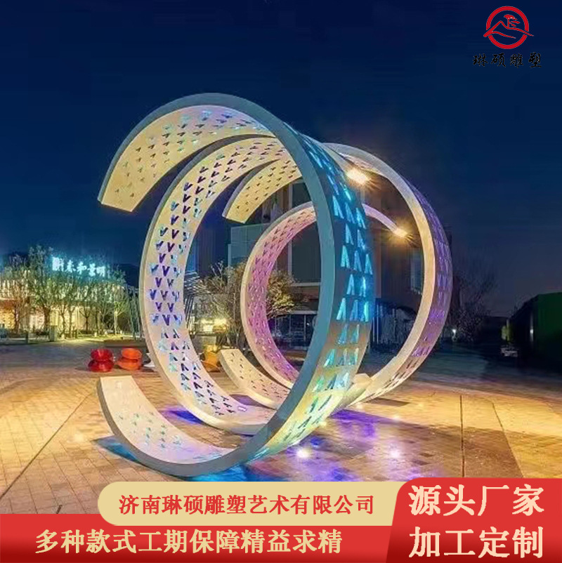 Ornamen cincin paus abstrak besar lanskap jalan komersial kotak Kota luar ruangan pembuatan patung baja tahan karat