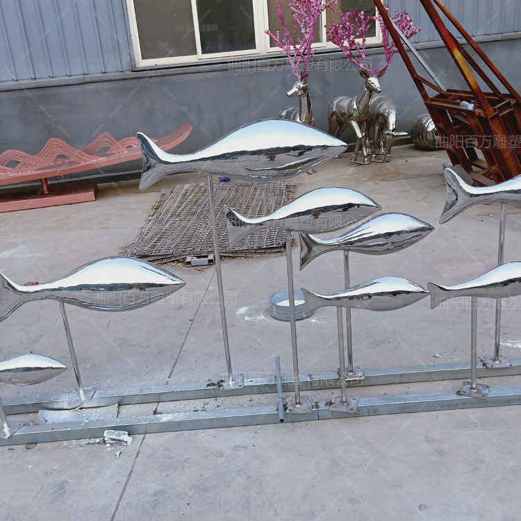 Stainless steel ikan pemandangan air patung cermin ikan kecil taman lanskap patung grosir