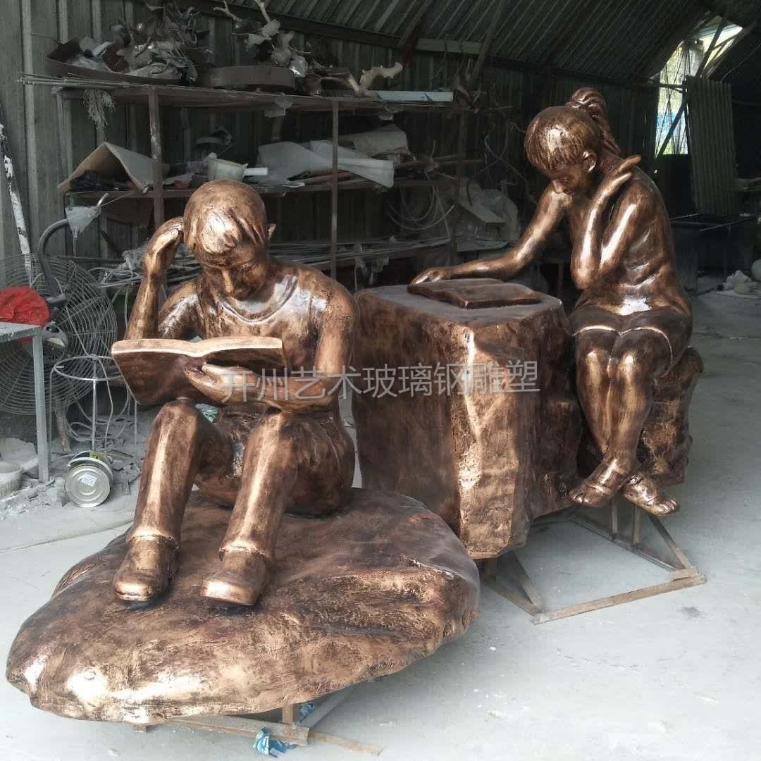 Pabrik langsung besar karakter tembaga imitasi membaca anak kampus patung lanskap taman dekorasi serat kaca karya seni