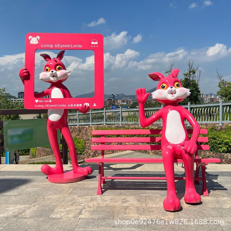 Pasokan kelinci fiberglass ornamen patung luar ruangan pemandangan sungai dekorasi taman lampu LED taman rumput