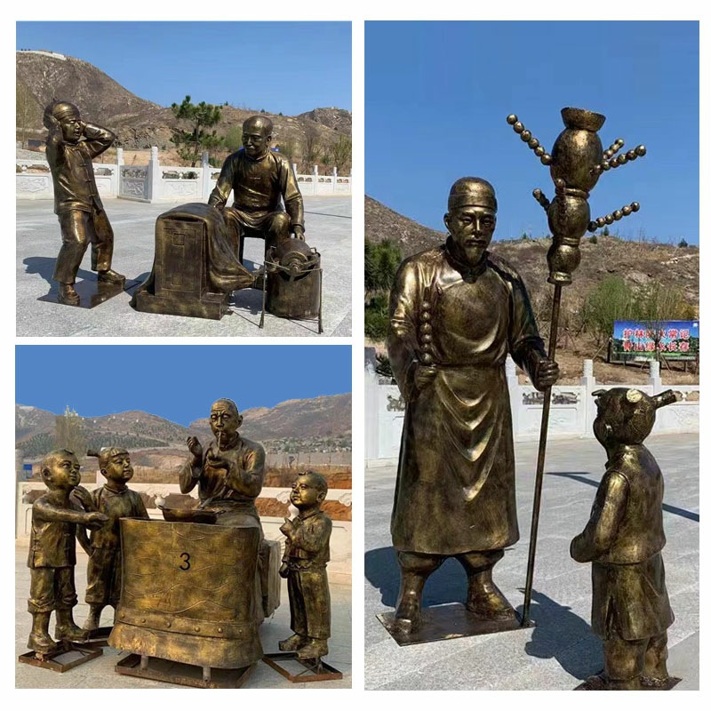 Pasokan pabrik patung lanskap tembaga cor patung jalanan rakyat sketsa tema Keluarga Pemandangan patung logam tembaga grosir