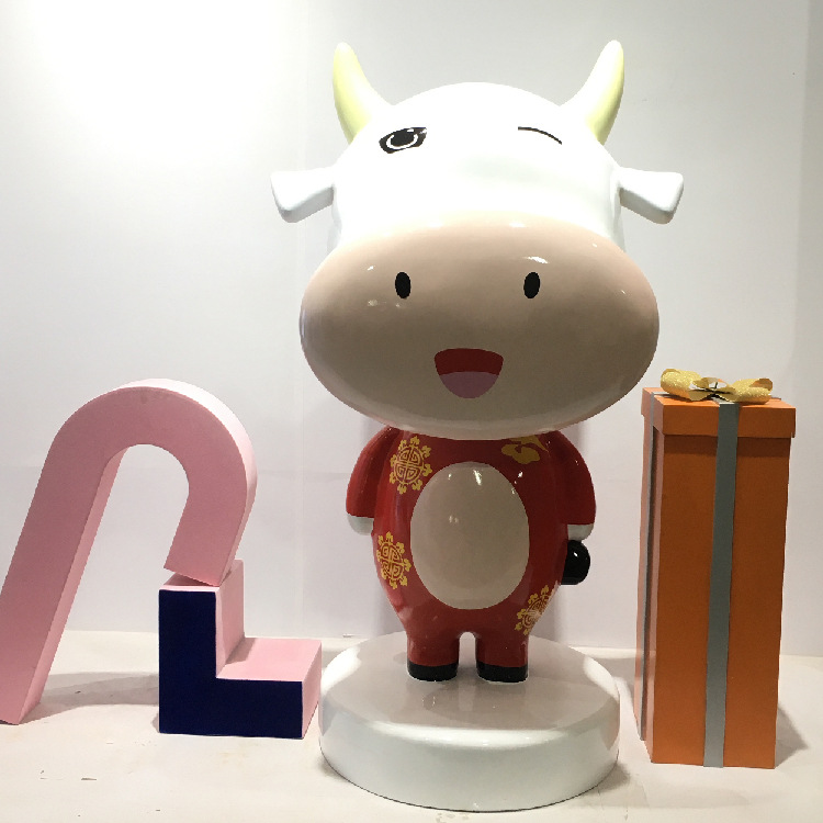 Kartun sapi serat kaca Tahun Baru Beruntung patung sapi pemandangan luar ruangan Tahun Baru dekorasi ternak