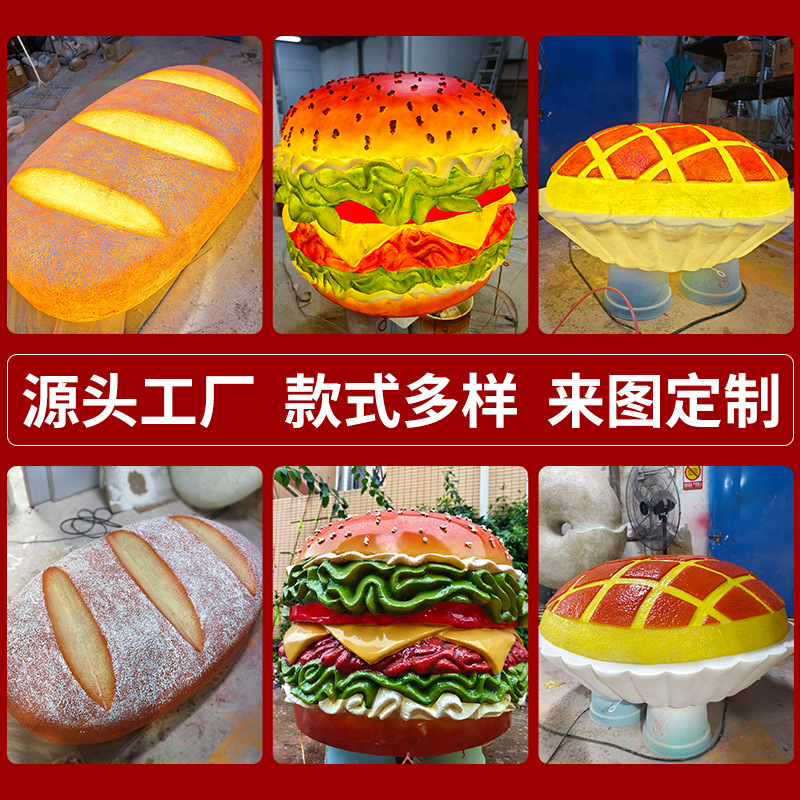 Model makanan patung serat kaca, mall belanja simulasi tinggi Dekorasi lantai toko makanan penutup Restoran luar ruangan kustomisasi pabrik