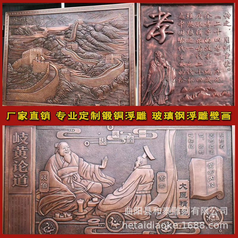 Dinding budaya relief tembaga tempa kampus tradisional Cina obat budaya lukisan dinding ruang peringatan FRP dinding latar belakang karakter tembaga imitasi