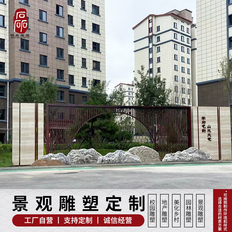 Lanskap besi tahan karat besar luar ruangan dinding real estate berbentuk khusus layar logam lanskap retro dinding dekoratif kustomisasi pabrik