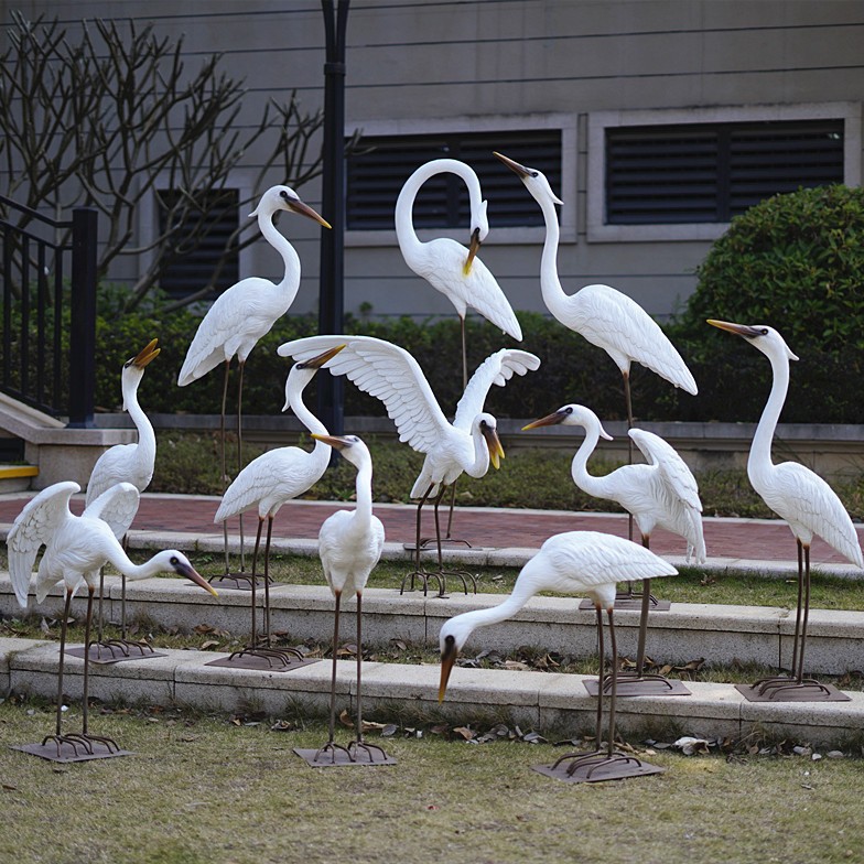 FRP imitasi luar ruangan patung kuntul ornamen hewan dekorasi taman air kolam bebatuan taman dekorasi derek putih unik