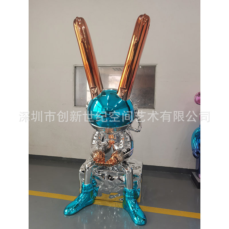 Fiberglass patung electroplating berwarna-warni boneka kelinci shopping mall hotel jendela perhiasan FRP electroplating kelinci patung