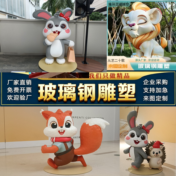 Patung fiberglass besar yang disesuaikan untuk plaza komersial, produsen ornamen kartun hewan untuk lanskap luar ruangan