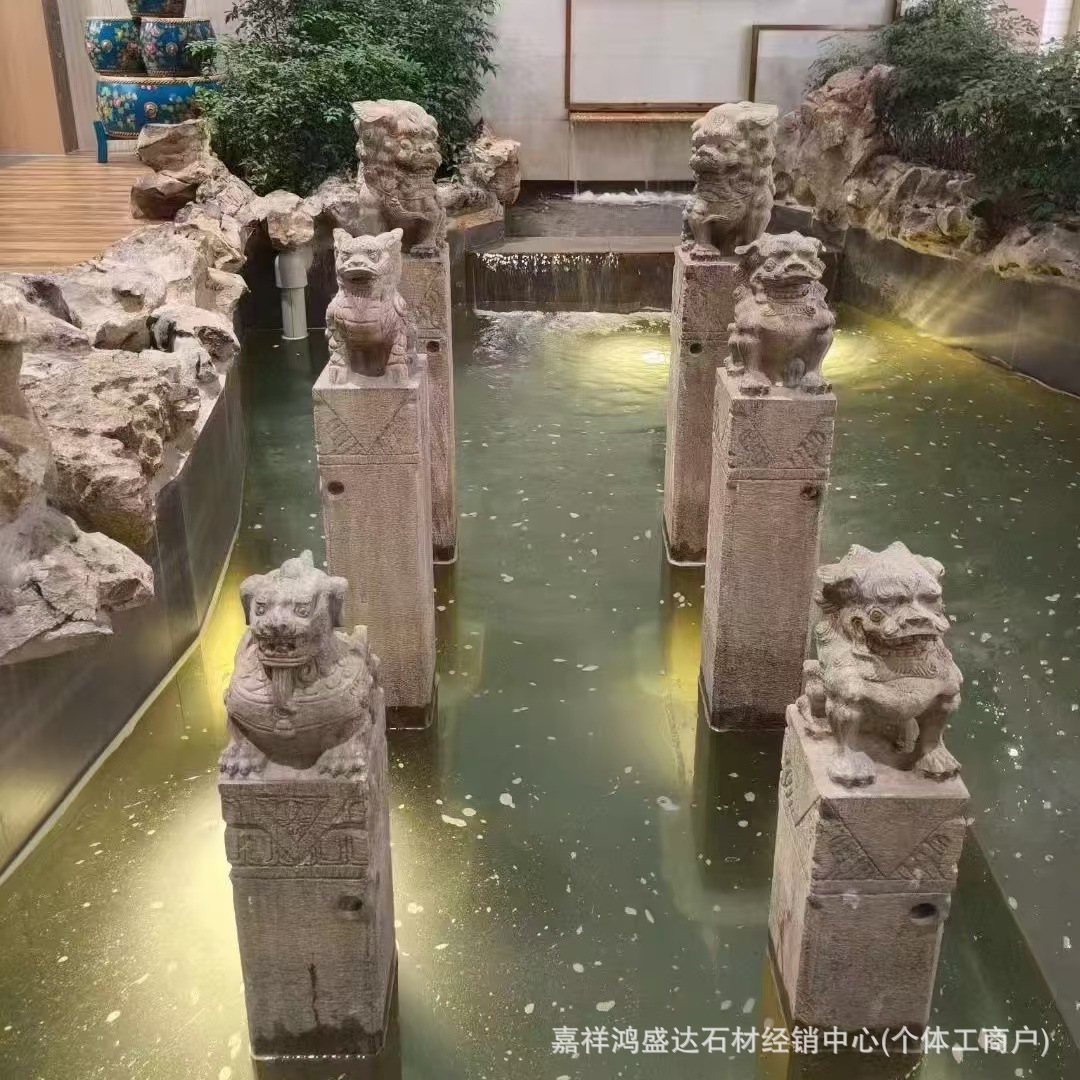 Silinder Batu di Pintu Air Laut Qingshimen Tangki Air Feng Shui Ukiran Cekungan Ikan Teratai Dekorasi Lansekap Taman