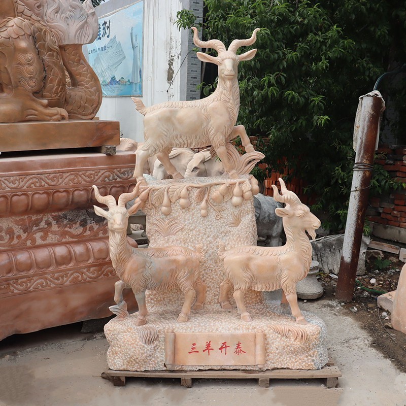 Ukiran batu dekorasi pintu luar ruangan, patung hewan Kambing kecil marmer taman rumput persegi