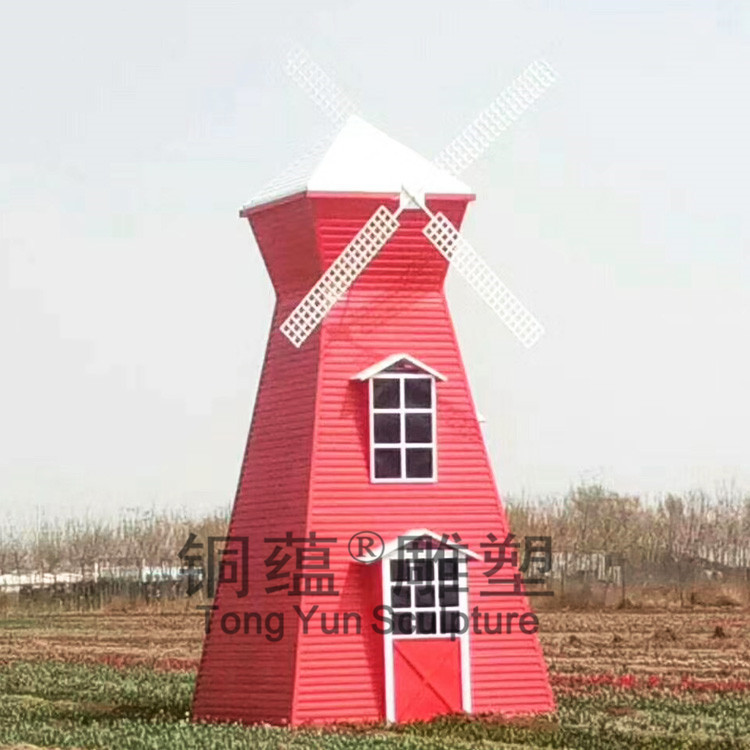 Kincir Angin serat kaca besar patung dicat dekorasi kincir angin taman lanskap patung rumah tembaga produsen patung