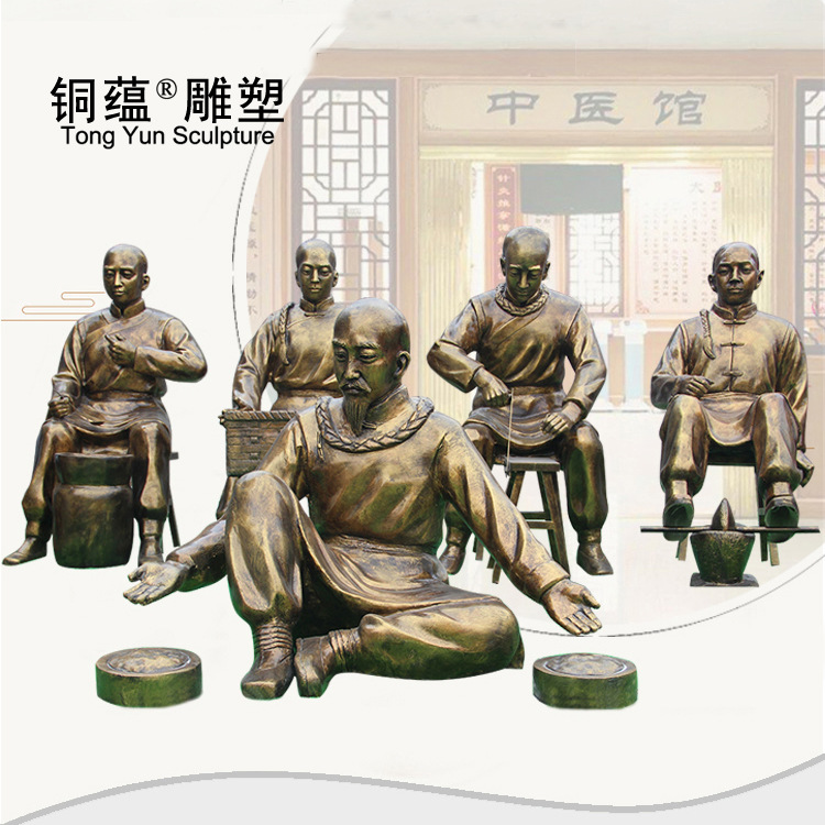 FRP patung tokoh tembaga imitasi, patung budaya obat Tiongkok tradisional tradisional, patung pertanyaan Nadi farmasi, patung budaya obat Tiongkok tradisional