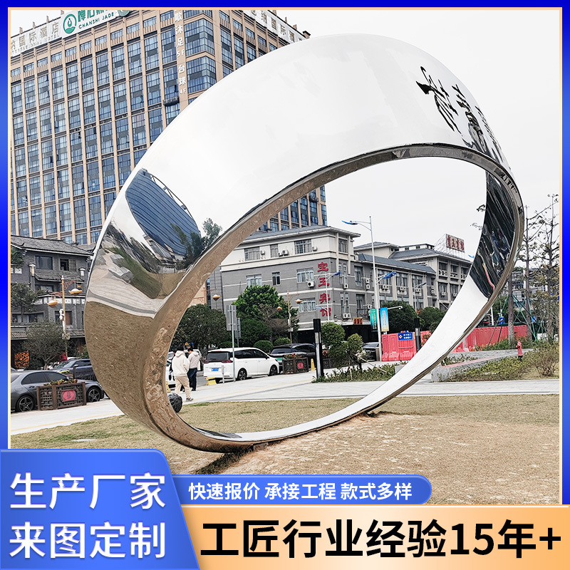 Patung cermin stainless steel besar luar ruangan cincin abstrak taman penjualan kantor besi tahan karat tidak teratur Patung Pemandangan Air