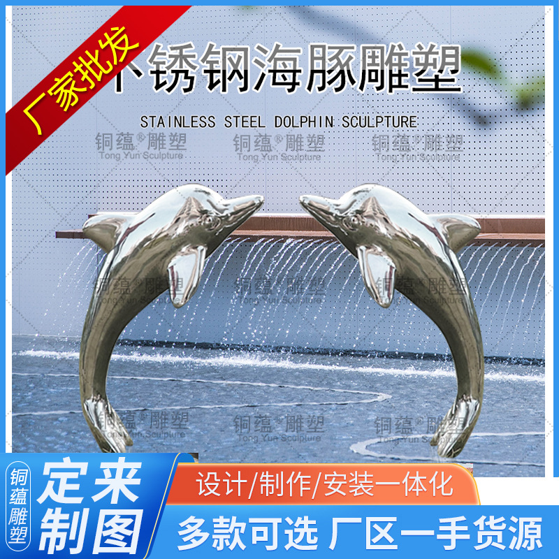 Luar ruangan baja nirkarat patung lumba-lumba logam simulasi penjualan departemen persegi tahan air baja tahan karat manufaktur lumba-lumba