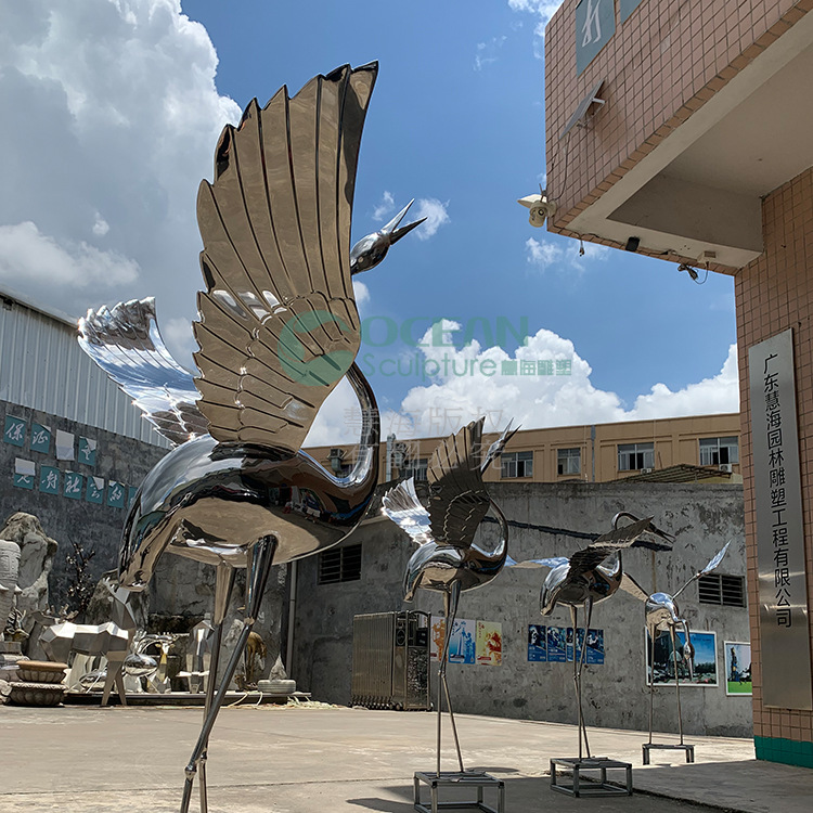 Patung baja tahan karat cermin derek Flamingo dekorasi luar ruangan halaman penjualan kantor pemandangan air Dekorasi seni sketsa