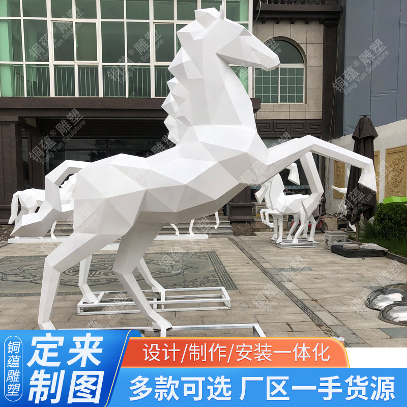 Patung kuda geometris baja tahan karat, ornamen kuda kreatif online merah penjualan hewan beruang kelinci geometris