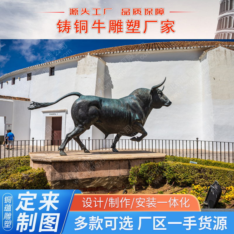 Patung tembaga berpikir ternak tembaga, dekorasi ternak lari, patung bullfight, patung lanskap, patung persegi besar luar ruangan