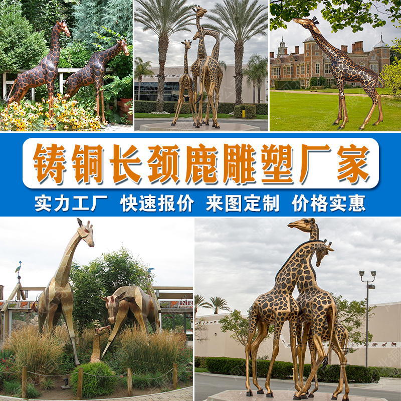 Patung jerapah tembaga cor besar, dekorasi hewan kreatif lanskap taman luar ruangan patung jerapah kuningan