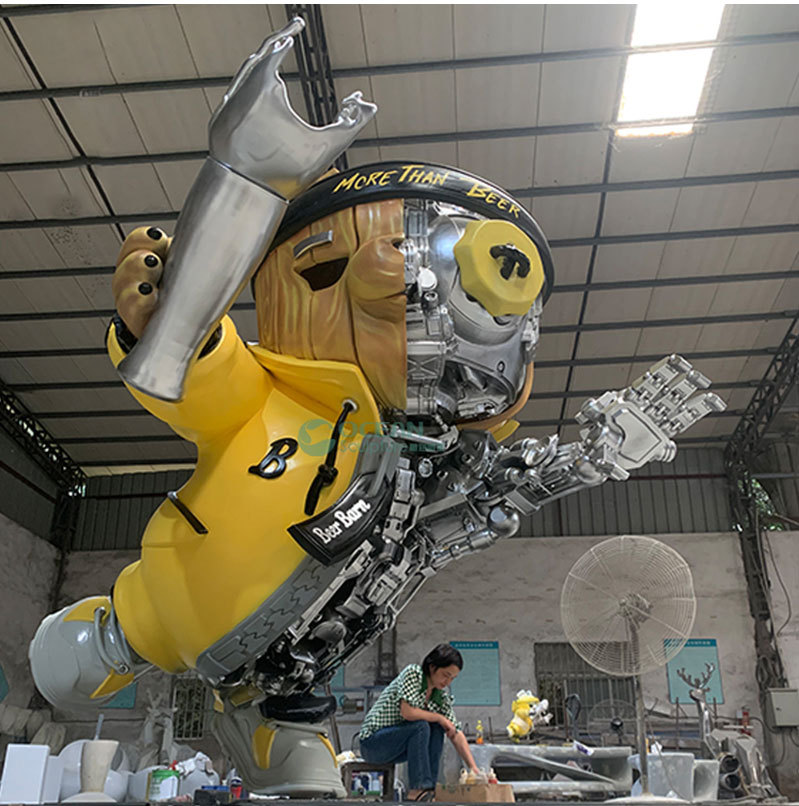 Robot kartun besar serat kaca patung Meichen mall patung sketsa kreatif