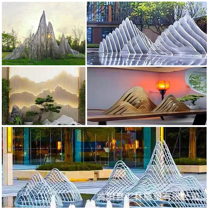 Cermin baja tahan karat luar ruangan logam berongga abstrak pipa baja patung potongan berbentuk gunung penjualan departemen Dekorasi kolam
