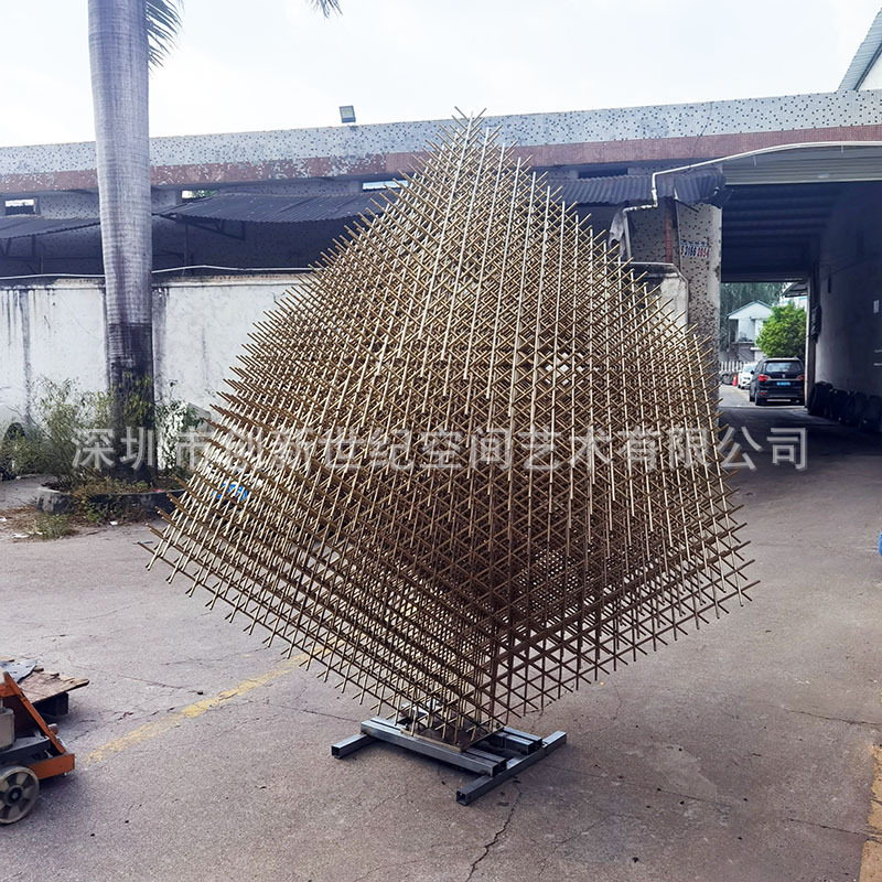 Patung Besar baja tahan karat dekorasi kubus berongga kubus elektroplating abstrak hotel dekorasi lantai luar ruangan