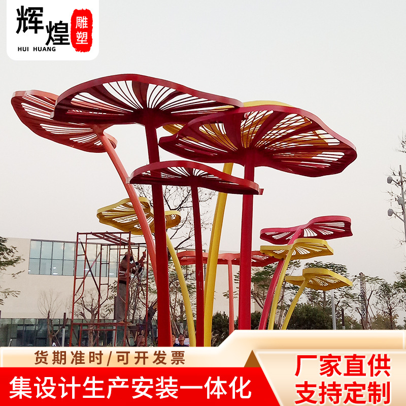 Produsen patung besar memberikan taman luar ruangan persegi dekorasi berlubang patung baja tahan karat patung daun