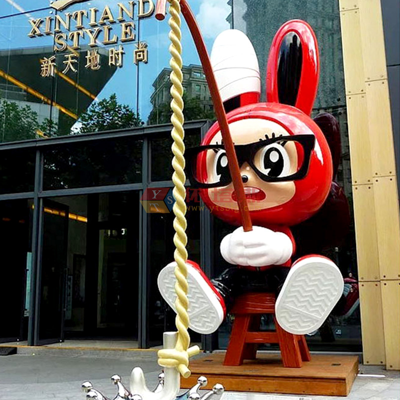 ETAs FRP patung IP kelinci hewan, patung Shangchao pejalan kaki jalan belanja plaza pintu masuk kartun kelinci