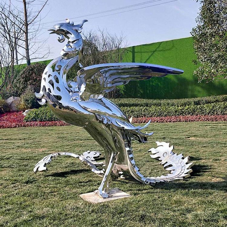 Patung Phoenix Yufei stainless steel besar, pabrik luar ruangan dekorasi abstrak kreatif patung phoenix Stainless Steel