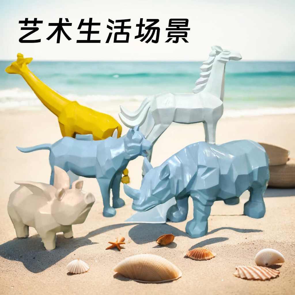 Ornamen dekorasi hewan kantor penjualan patung lanskap mewah jerapah kuda permukaan blok geometris serat kaca luar ruangan