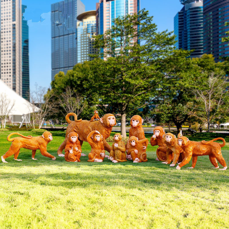 Ornamen Monyet Emas Simulasi Ornamen Luar Ruangan Resin Hewan FRP Model Monyet Lansekap Taman
