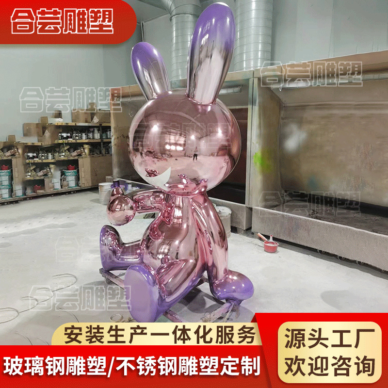 Dekorasi lantai boneka kartun besar karya seni abstrak lobi hotel mall belanja patung kelinci elektroplating serat kaca