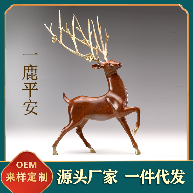 Dekorasi rusa kuningan, patung lanskap dekorasi kerajinan tembaga ruang tamu kantor dekorasi rumah mobil