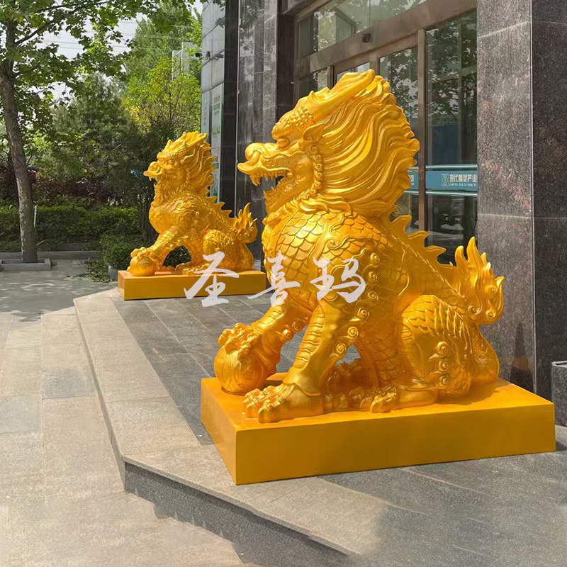 Tempat Besar Fiberglass Unicorn Simulasi Binatang Feng Shui Binatang Unicorn Patung Hewan Pengecoran