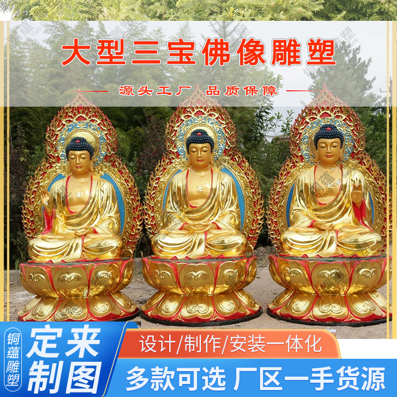 Patung Buddha Tembaga Besar Kustom Pengecoran Tembaga Barat Tiga Suci Guanyin Shakyamuni