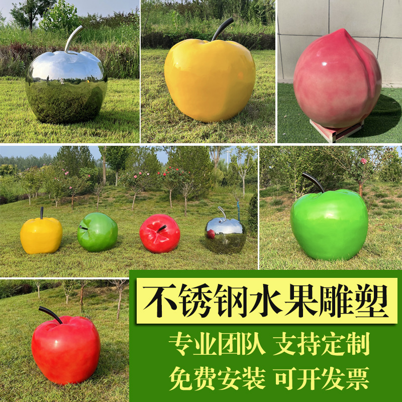 Stainless Steel Buah Patung Cermin Imitasi Buah Sayuran Apel Persik Patung Dekorasi Tanaman Area Indah