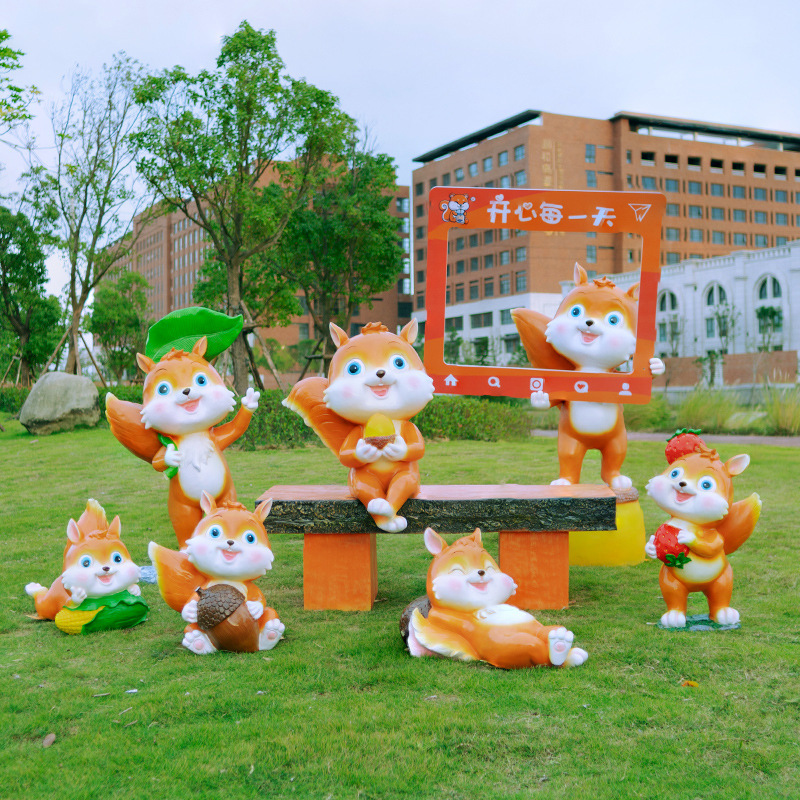 Kaca Patung Hewan FRP Kursi Taman Penjualan Squirrel