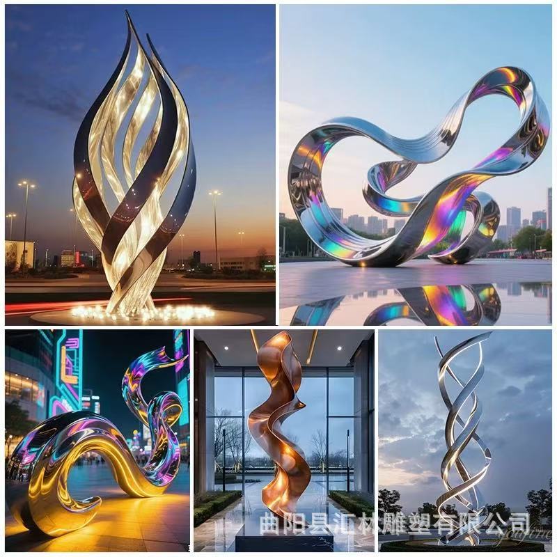 Skala Besar Stainless Steel Sculpture Boat Cermin Abstrak Emosional Emitting Bergelombang Air Patung Waterscape Departemen Penjualan Plaza