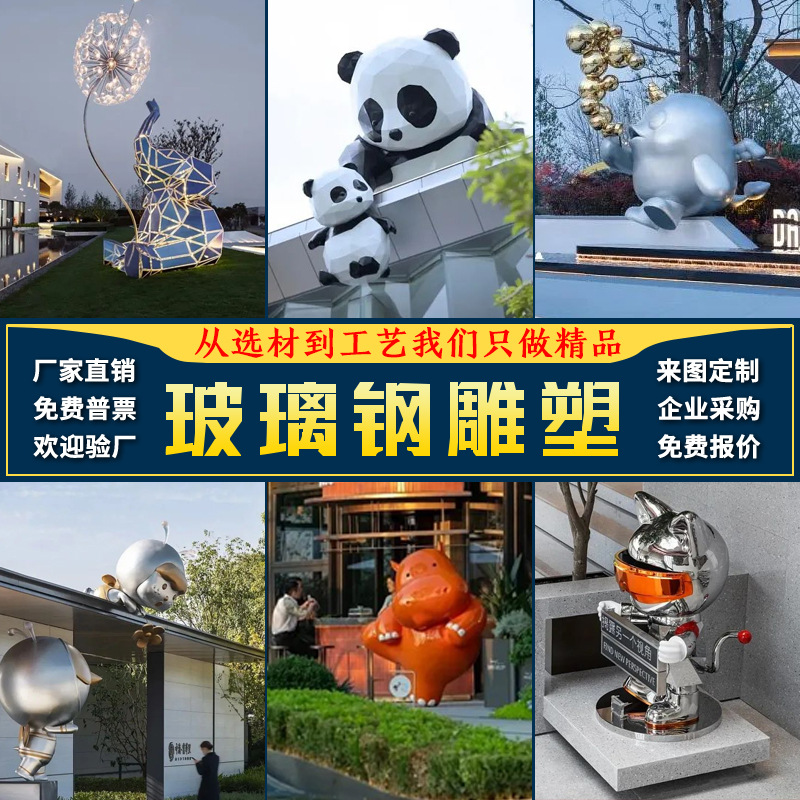 Pemandangan Taman Luar Ruangan Besar Stainless Steel FRP Meja dan Kursi Santai Berbentuk Kreatif