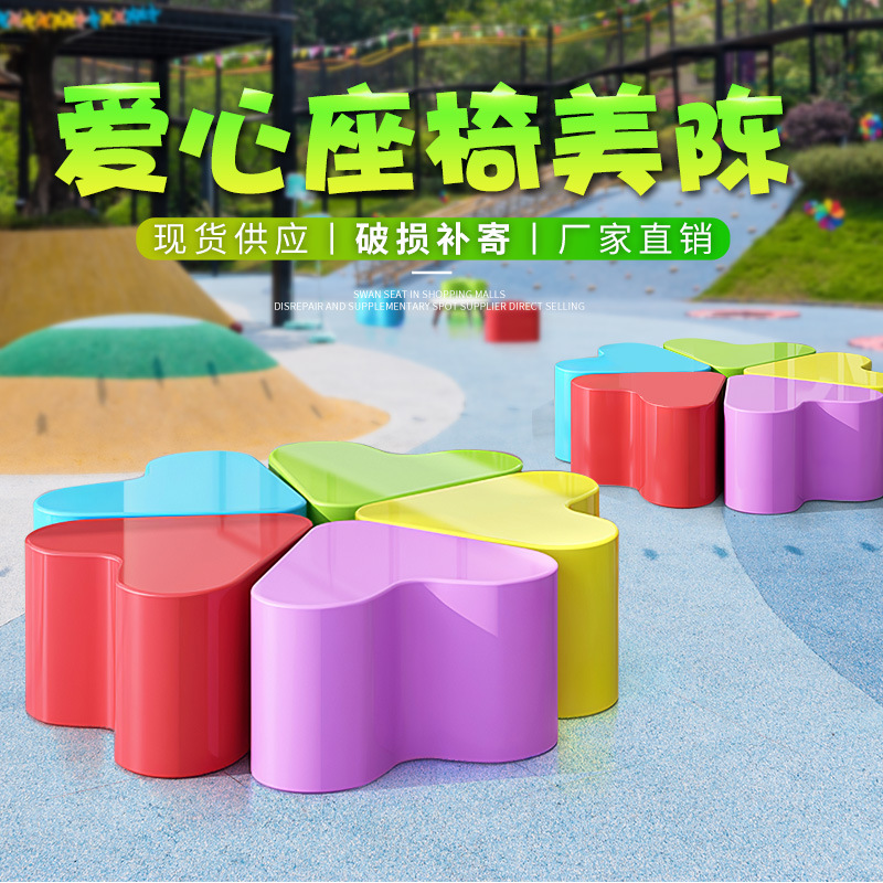 Sambungan kreatif cinta kenyamanan kursi pelangi luar ruangan fiberglass patung mal belanja hotel Taman kanak-kanak dekorasi