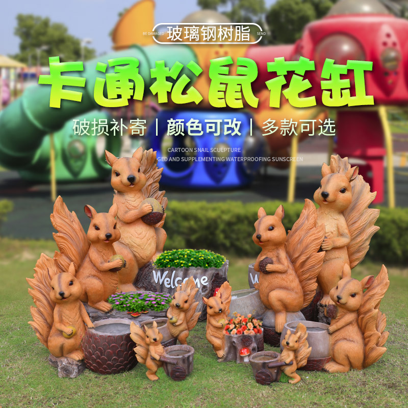 Dekorasi tupai buatan, pot bunga FRP luar ruangan taman lanskap taman bentuk hewan kreatif