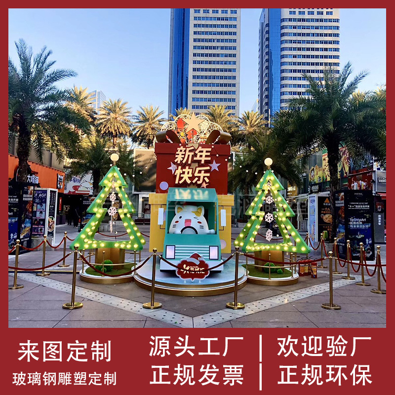 Alat peraga dekorasi luar ruangan, ornamen kartun besar, properti dekorasi persegi Mall, pabrik kustomisasi patung serat kaca, Tahun Baru