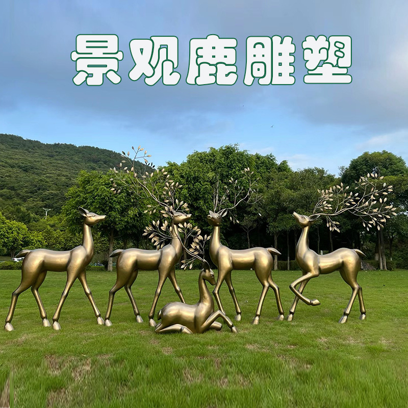 Changsheng membuat komunitas taman lansekap rusa tembaga abstrak sika rusa taman luar ruangan hewan patung tembaga