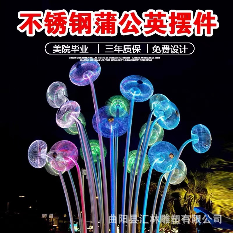Taman luar ruangan baja tahan karat dandelion patung cermin lampu lanskap abstrak berongga lingkaran bulat lantai tanaman