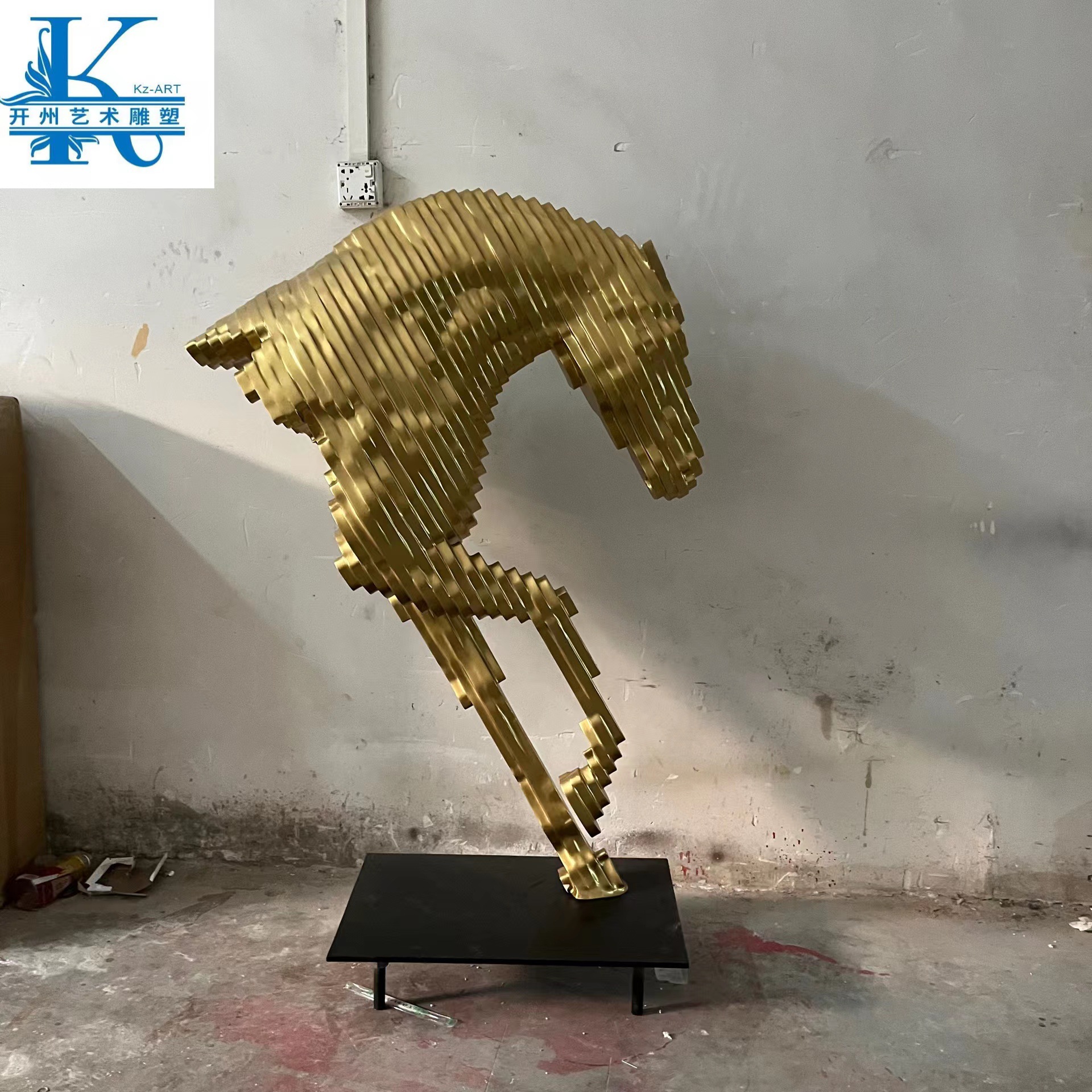 Dekorasi karya seni patung abstrak kreatif sampanye besi emas kuda model rumah penjualan kantor lobi dekorasi lembut Meichen