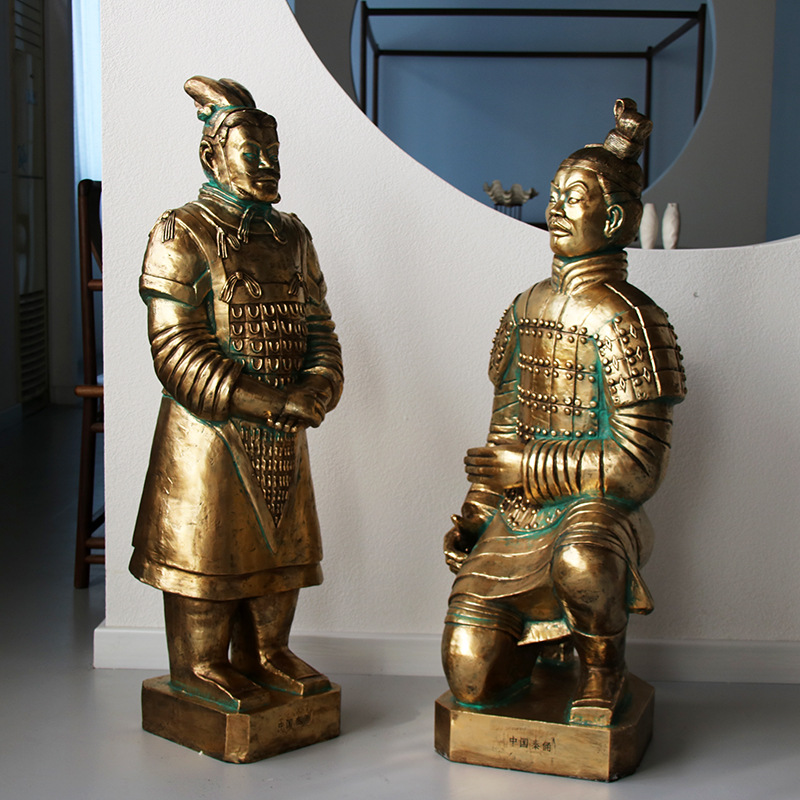 Luar ruangan simulasi besar Tai Shihuang terakota Ksatria serat kaca patung retro Properti dekorasi model dekorasi ruang tamu