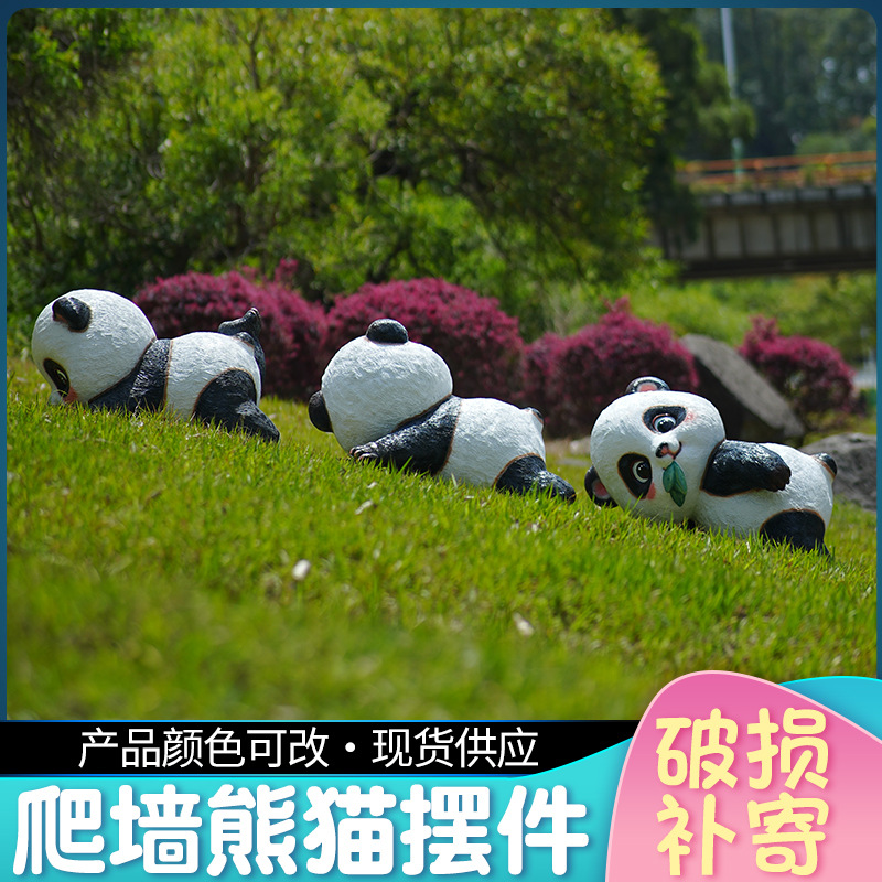 Imitasi Memanjat Dinding Panda Raksasa Fiberglass Baja Luar Ruangan Kartun Pintu Merah Pusat Perbelanjaan Tanda Tangan Dekorasi Hewan