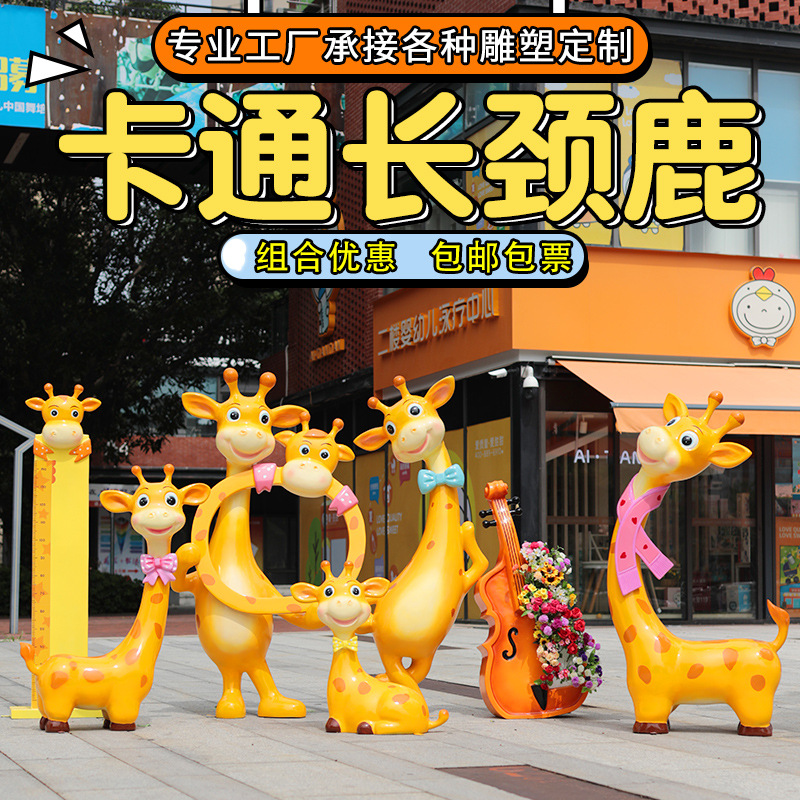 Kartun jerapah patung serat kaca luar ruangan taman kanak-kanak komersial komunitas indah Jam tempat dekorasi foto Meichen