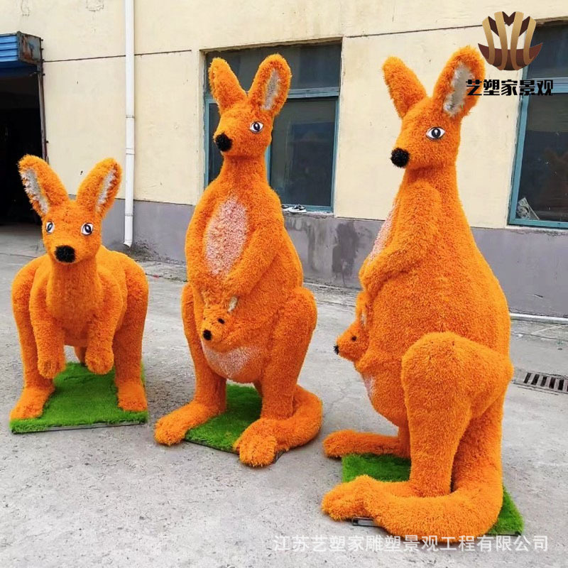 Ornamen kerajinan jerami pemodelan ukiran hijau kanguru buatan, patung rumput lima warna luar ruangan besar